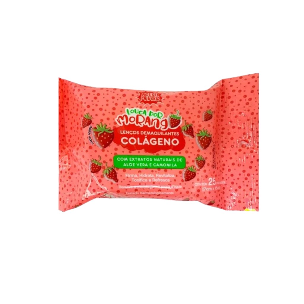 Lenço Demaquilante Colágeno Louca por Morango - Super Poderes é a solução perfeita para quem busca praticidade e eficácia na remoção da maquiagem!